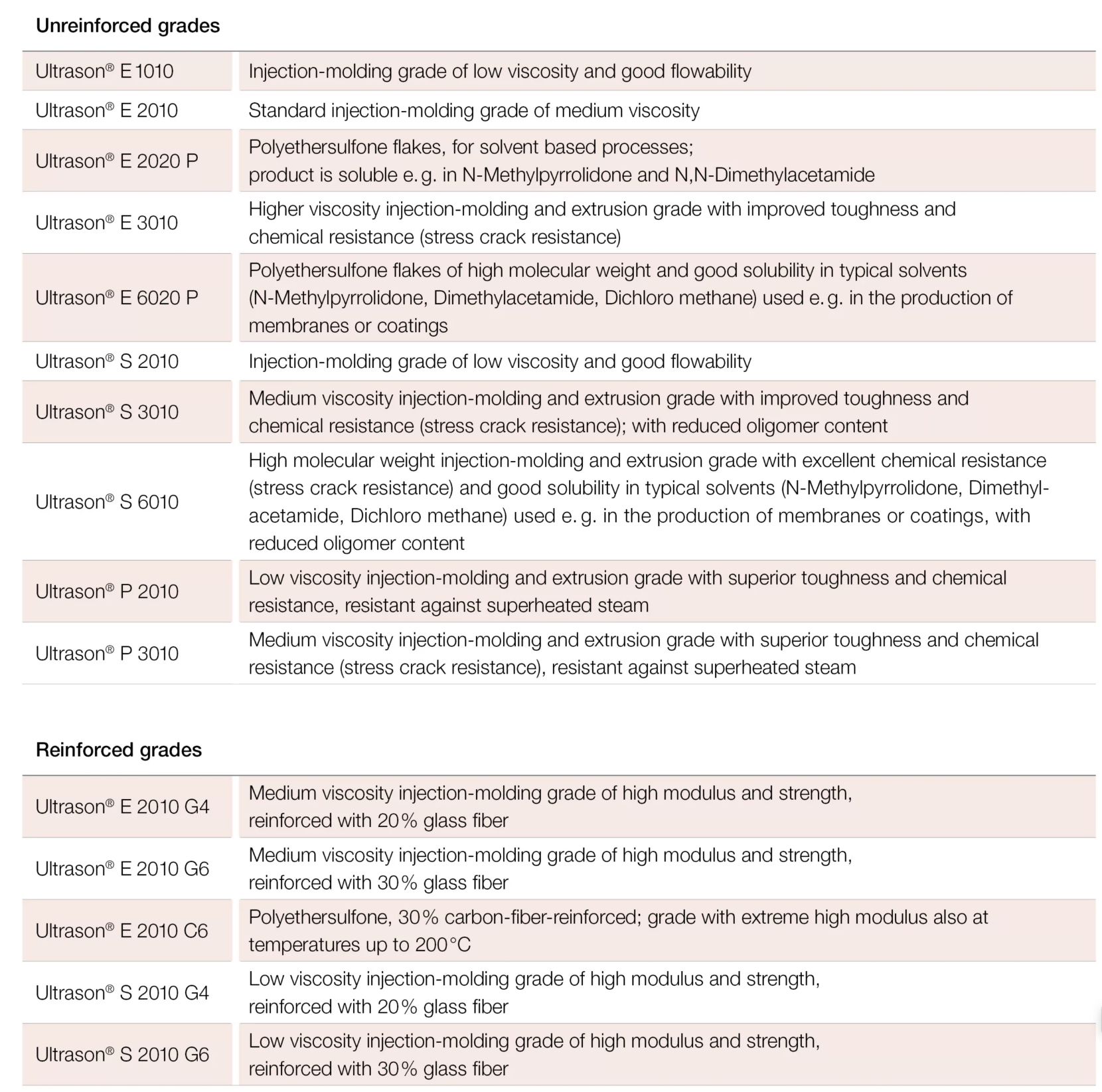Ultrason®은 특히 높은 내열성을 요구하는 용도에 맞게